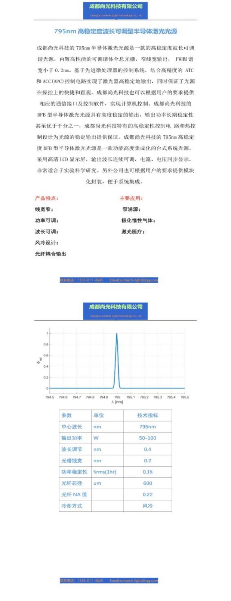 795nm高稳定度波长可调型半导体激光光源